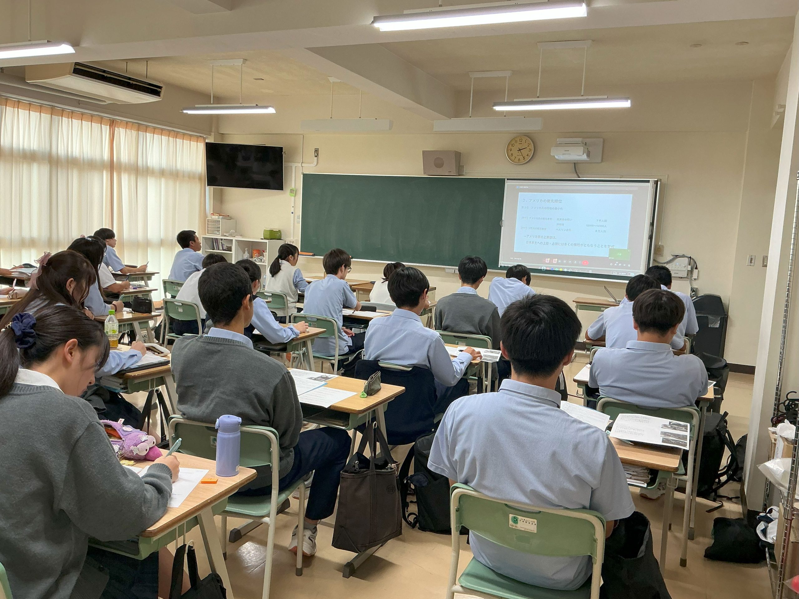 生徒たちは資料を参照しながら説明を聞き、学習シートにメモを取りながら熱心に聞いていました。