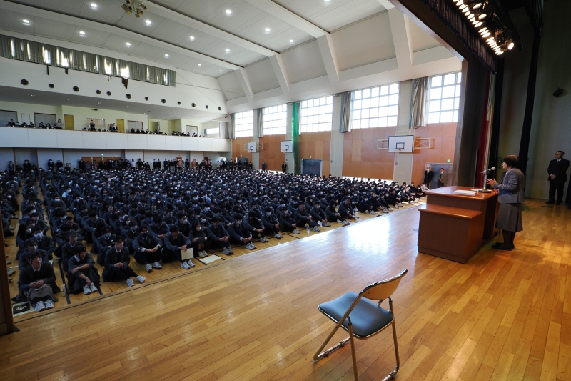 君達が自分で選択した道は正しいのです。その正しいと決めた進路に向かって勇気を持って突き進んでください。さらに、このメッセージはEverything else is secondary.(ほかのことは二の次で構わない)という言葉で終わります。勇気を持って、迷うことなく突き進んでください。自分のやりたいことだけを考えて、勇気をもって。なぜなら、その他のことは考えるに足りないものだからです。私達は高校3年生の皆さんの勇気を支えていきます。