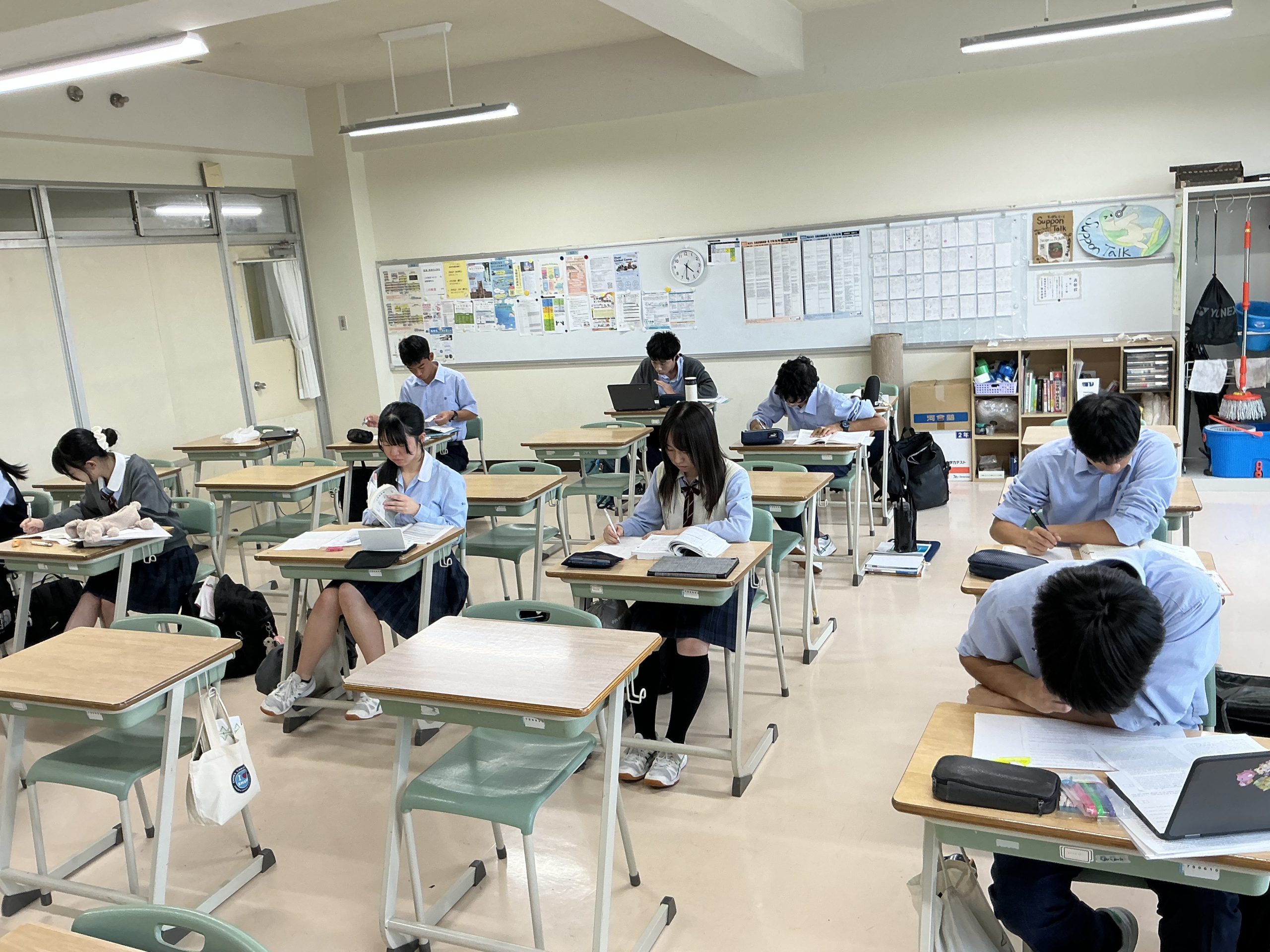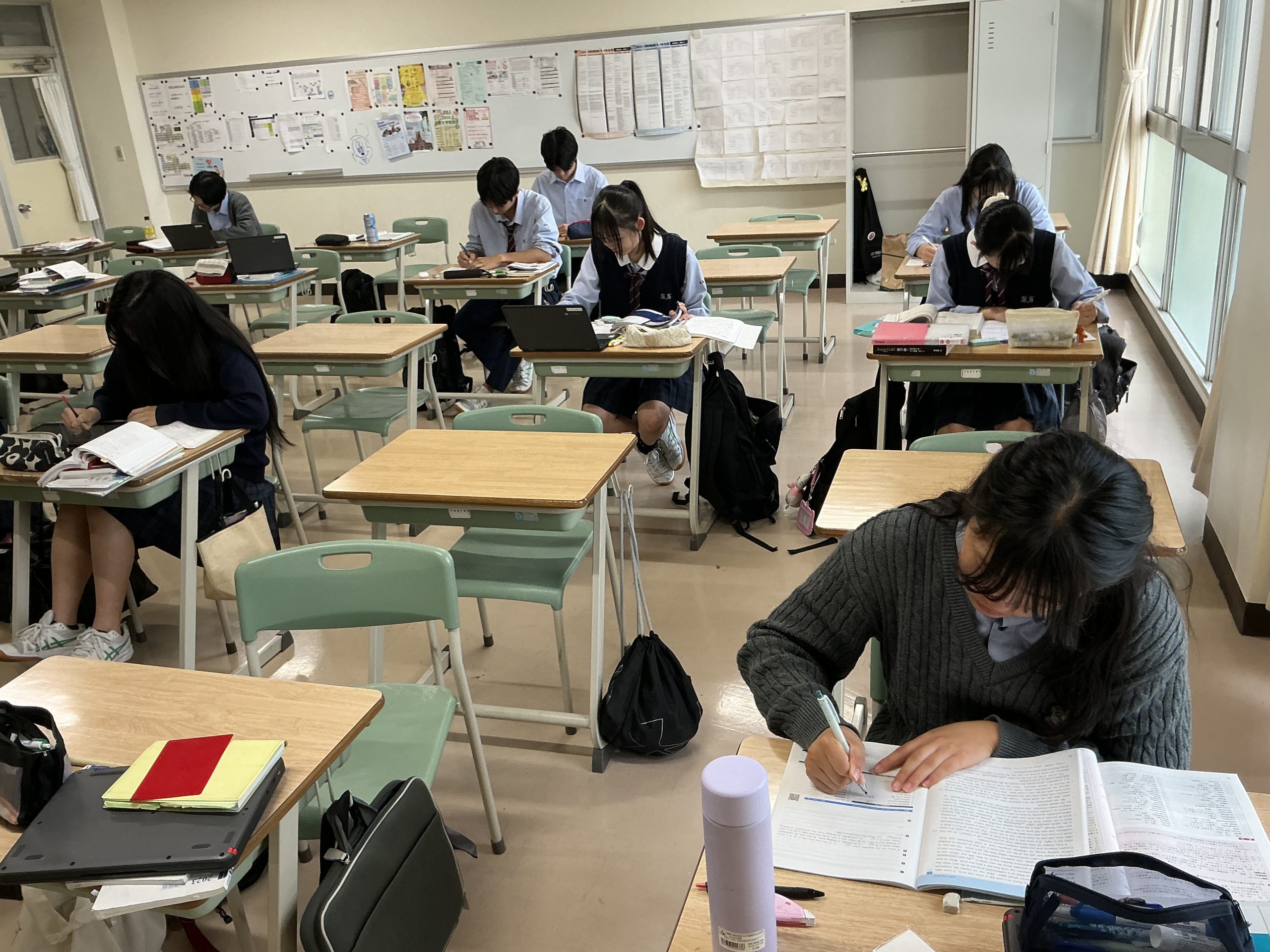 試験一週間前になりました。秀英では教室を開放し、自習室にしています。