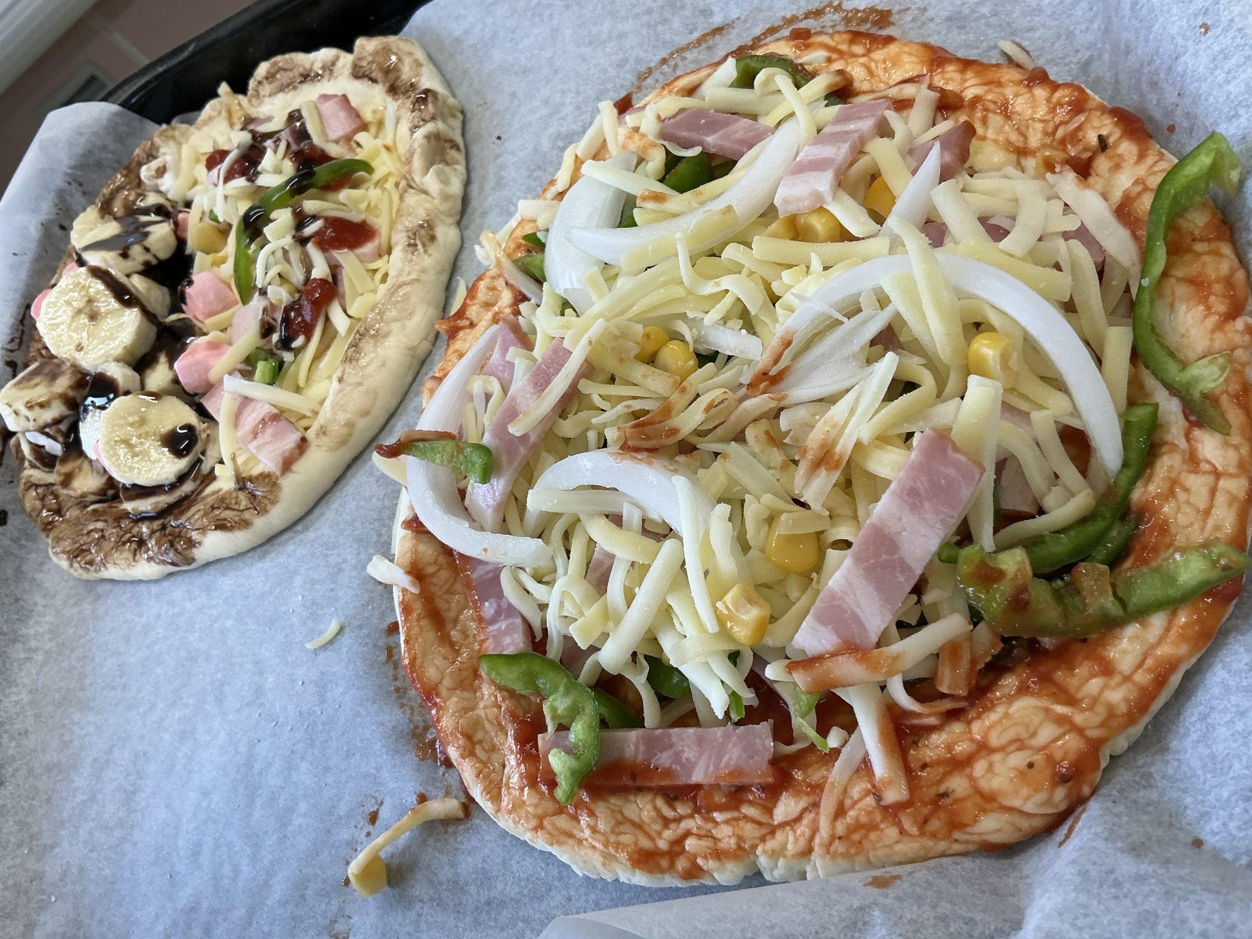甘いのもしょっぱいのも食べたい嬉しいピザです。